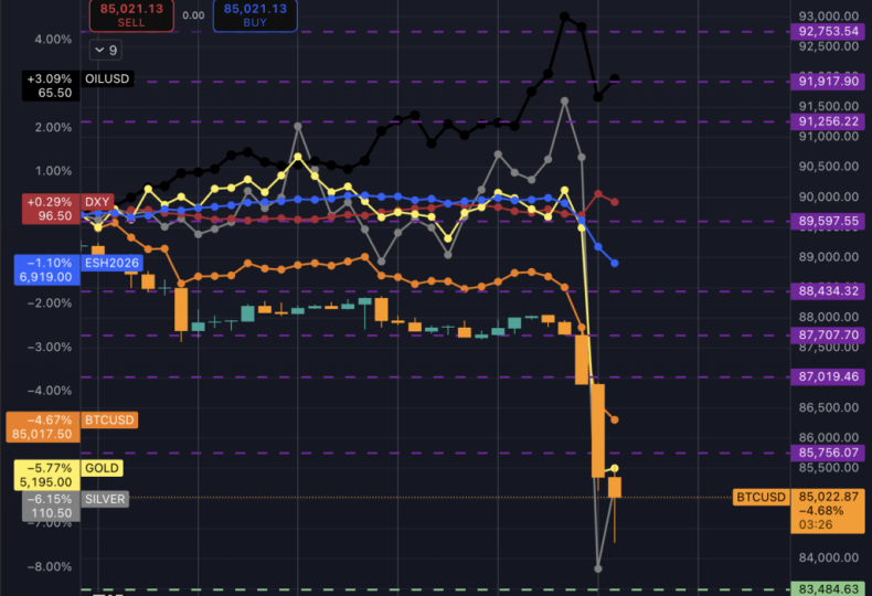 The US dollar slid to a four-year low, while gold and silver pushed deeper into record territory as Bitcoin attempted to recliam the $90,000 level. During the past day, the dollar index, a gauge of the greenback against major peers, touched